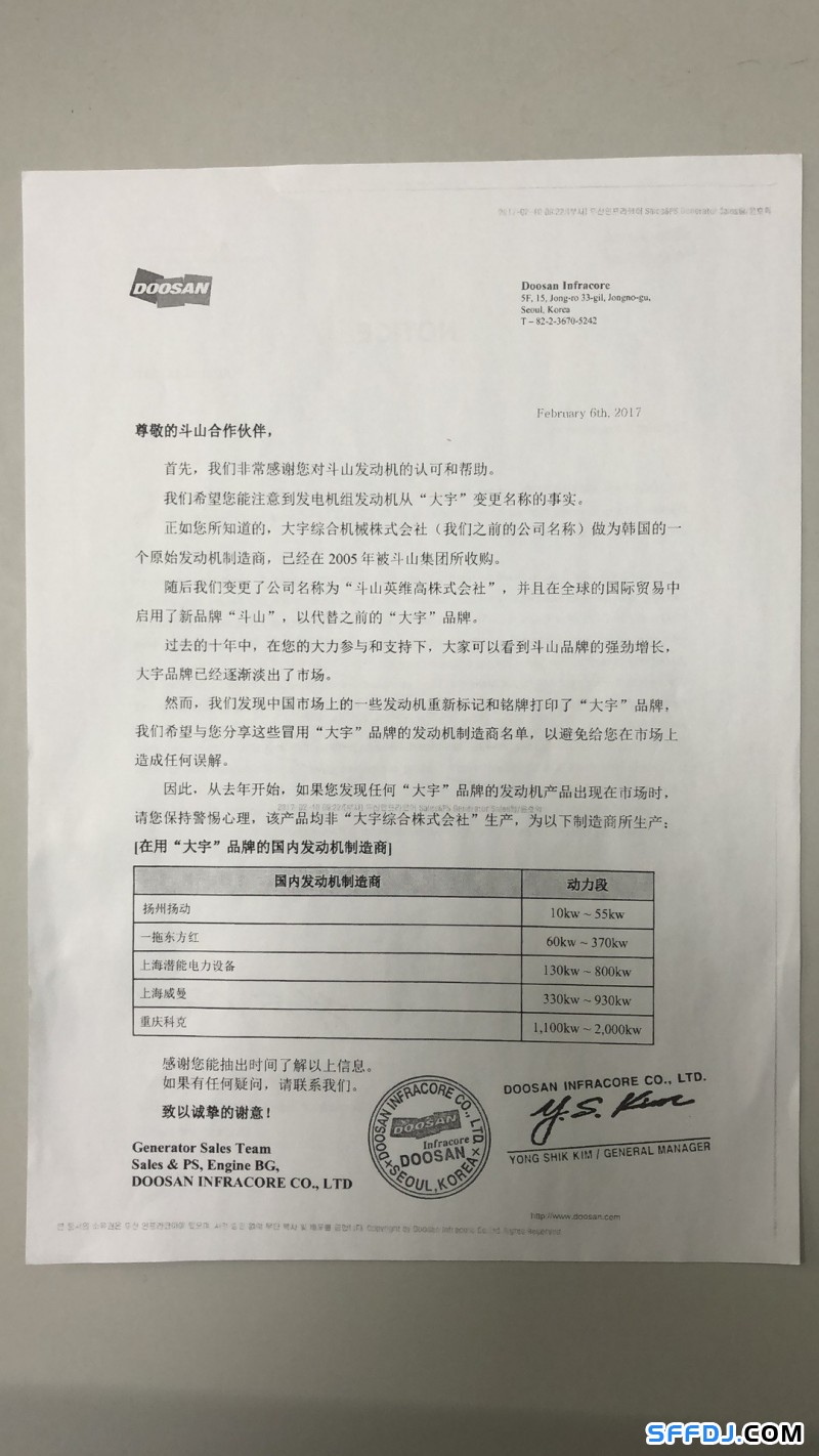 韓國大宇更名韓國斗山在中國區(qū)域說明